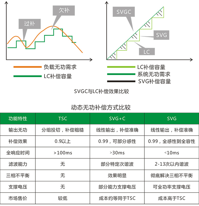 傳統(tǒng)無功補(bǔ)償采用的是慢速開關(guān)器件對(duì)電容器分組投切的方式,存在級(jí)差,補(bǔ)償精度差,響應(yīng)速度慢。SVG采用的是由高速開關(guān)器件產(chǎn)生補(bǔ)償電流的方式,不存在補(bǔ)償精度的問題,而且響