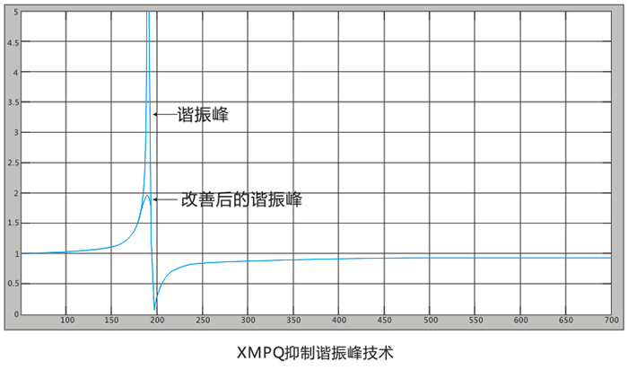 在實(shí)際應(yīng)用中,用戶使用的傳統(tǒng)電能質(zhì)量治理形式多種多樣,有不串電抗器的純電容C、有串0.4%~14%電抗器的TSC、有無源濾波LC,XPQM采用抑制諧振峰、屏蔽指定次諧波輸出等方式,保證了與任意無源器件并聯(lián),都能可靠運(yùn)行。尤其是與純電容C并聯(lián)而能可靠運(yùn)行,XMPQ抑制諧振技術(shù)達(dá)到國(guó)際先進(jìn)水平。